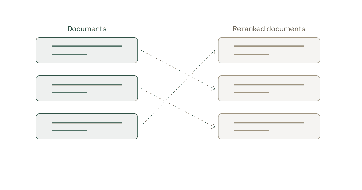 Reranking은 기존의 search system의 성능을 끌어올려주는 굉장한 방법론입니다. 짧게 말해서, reranking은 query와 response를 받고 그들끼리의 relevance score를 리턴합니다. 이를 통해 어떤 검색 시스템이든 활용하여 query에 대한 답을 포함할 가능성이 있는 여러 문서를 찾아낸 뒤, reranking 엔드포인트를 사용하여 이 문서들을 정렬할 수 있습니다.